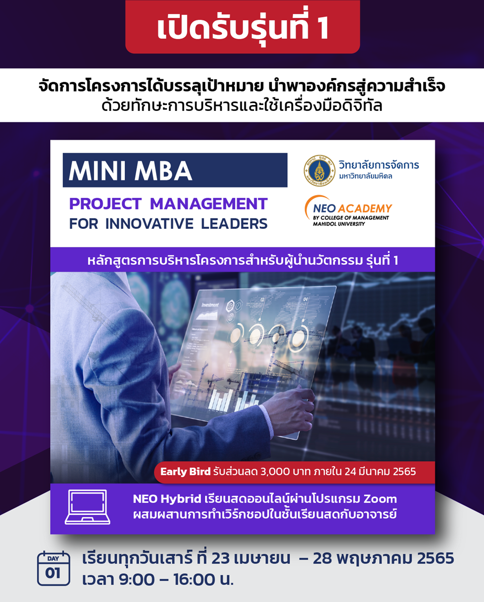 รายละเอียดเพิ่มเติม : https://www.neobycmmu.com/mini-mba-project-management-for-innovative-leader