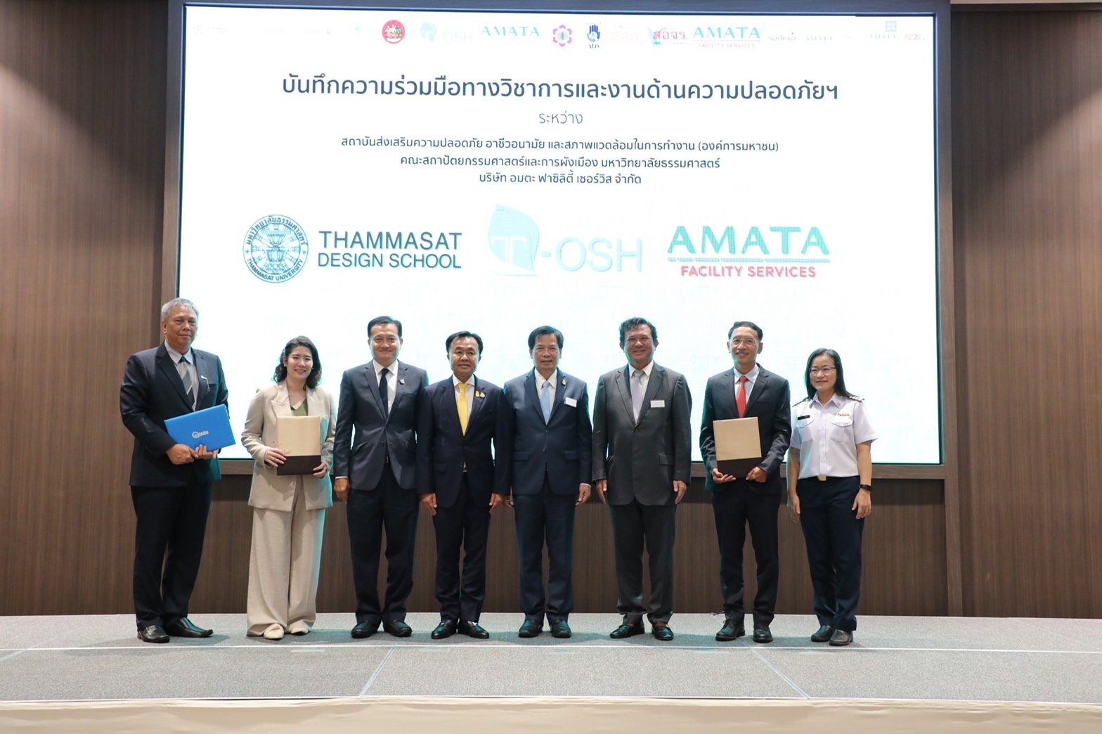 ภายหลังจากพิธีเปิดเสร็จสิ้น ดร.สุเทพ ชิตยวงษ์ ให้เกียรติมอบโล่ประกาศเกียรติคุณแก่สถานประกอบกิจการภาคตะวันออกที่เข้าร่วมกิจกรรมรณรงค์ลดสถิติอุบัติเหตุจากการทำงานให้เป็นศูนย์ ปี 2565 ระดับทอง (ปีที่ 1) จำนวน 12 รางวัล และ คุณวิชชุดา สีมาขจร ผู้อำนวยการสำนักงานนิคมอุตสาหกรรมอมตะซิตี้ (ชลบุรี) ขึ้นมอบรางวัลเชิดชูเกียรติให้กับสถานประกอบกิจการในนิคมอุตสาหกรรมอมตะซิตี้ ที่เข้าร่วมกิจกรรมการรณรงค์ลดสถิติอุบัติเหตุจากการทำงานให้เป็นศูนย์ประจำปี 2565 จำนวน 34 รางวัล จากนั้นเป็นพิธีลงนามข้อตกลงความร่วมมือ (MOU) ทางวิชาการและงานด้านความปลอดภัยฯ ระหว่าง สถาบันส่งเสริมความปลอดภัย อาชีวอนามัย และสภาพแวดล้อมในการทำงาน (องค์การมหาชน) นิคมอุตสาหกรรม อมตะซิตี้ และ คณะสถาปัตยกรรมศาสตร์และการผังเมือง มหาวิทยาลัยธรรมศาสตร์