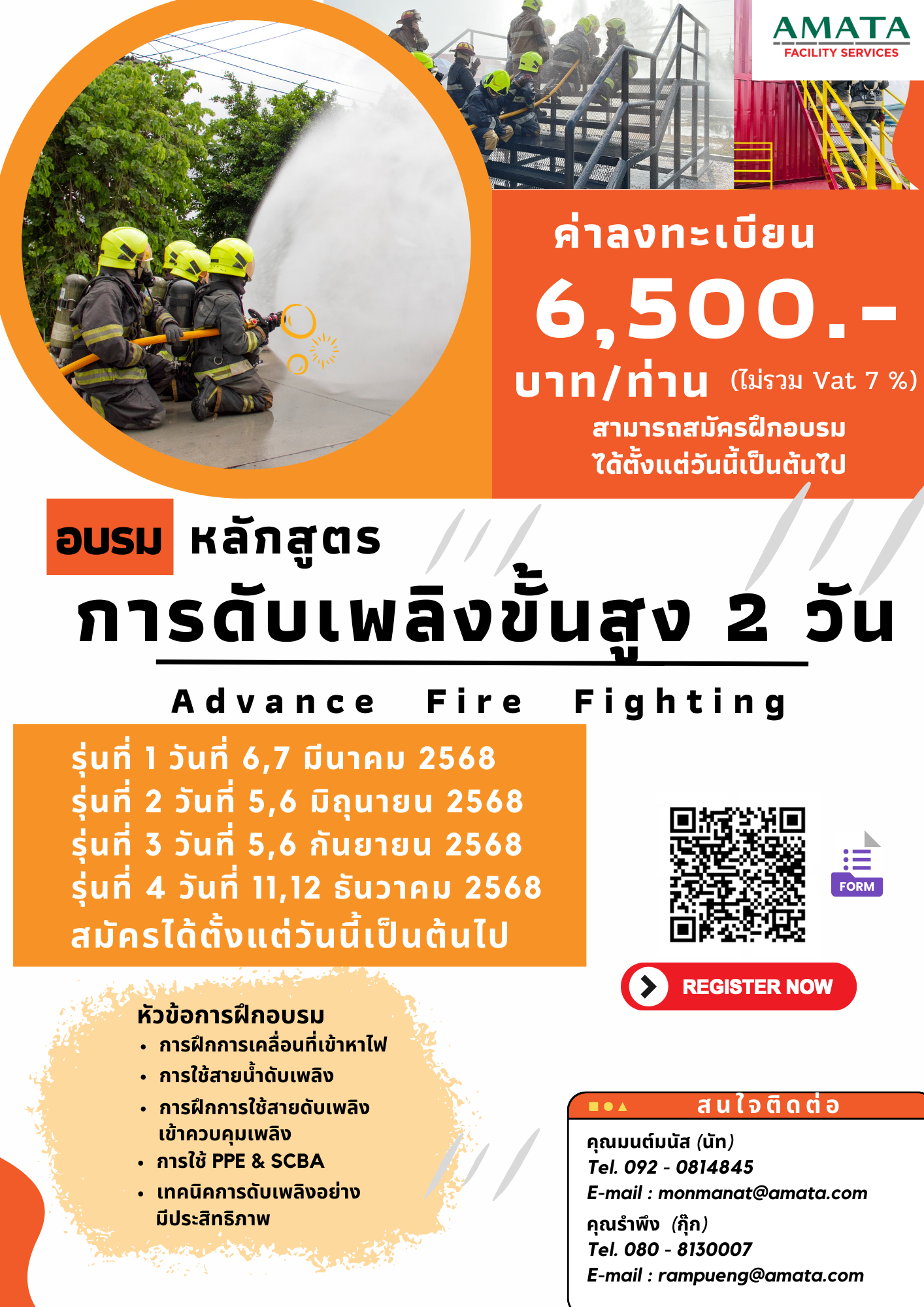 | 11-12 ธ.ค. 2568 | การดับเพลิงขั้นสูง 2 วัน | 20 คน | |