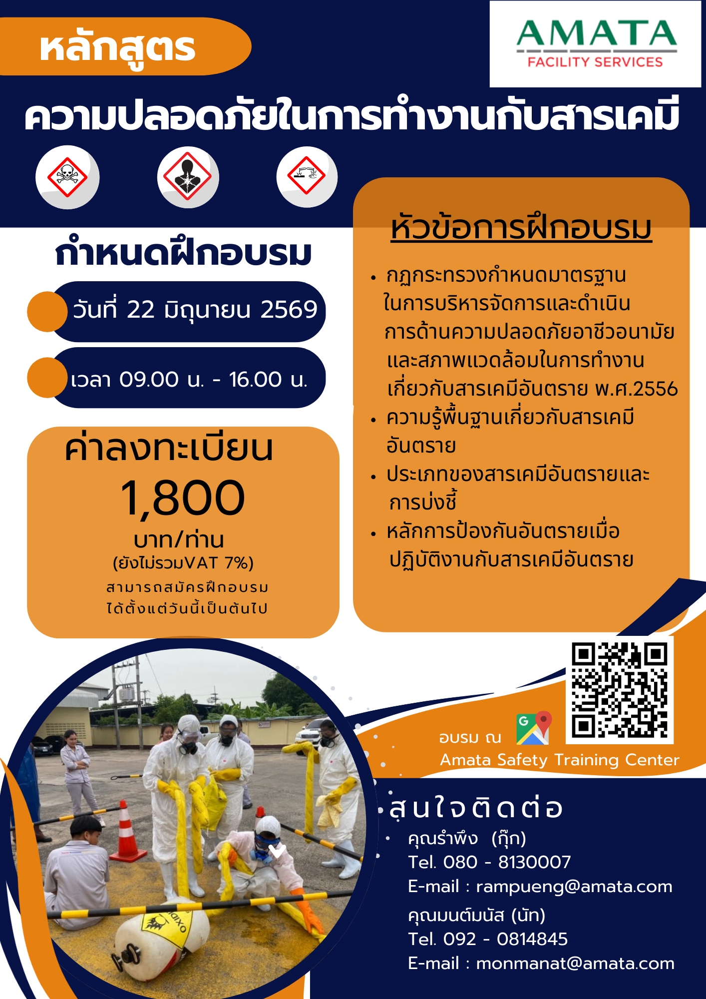 (On site) ท่านสามารถเข้ารับการฝึกอบรมที่ Amata Safety Training Center ณ นิคมอุตสาหกรรมอมตะซิตี้ จังหวัดชลบุรี