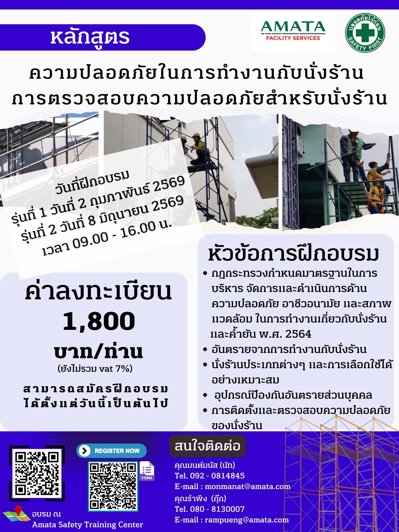 | 2 ก.พ. 68 | 6 | 1,800 | ความปลอดภัยในการทำงานกับนั่งร้าน | สมัครได้ที่ | |