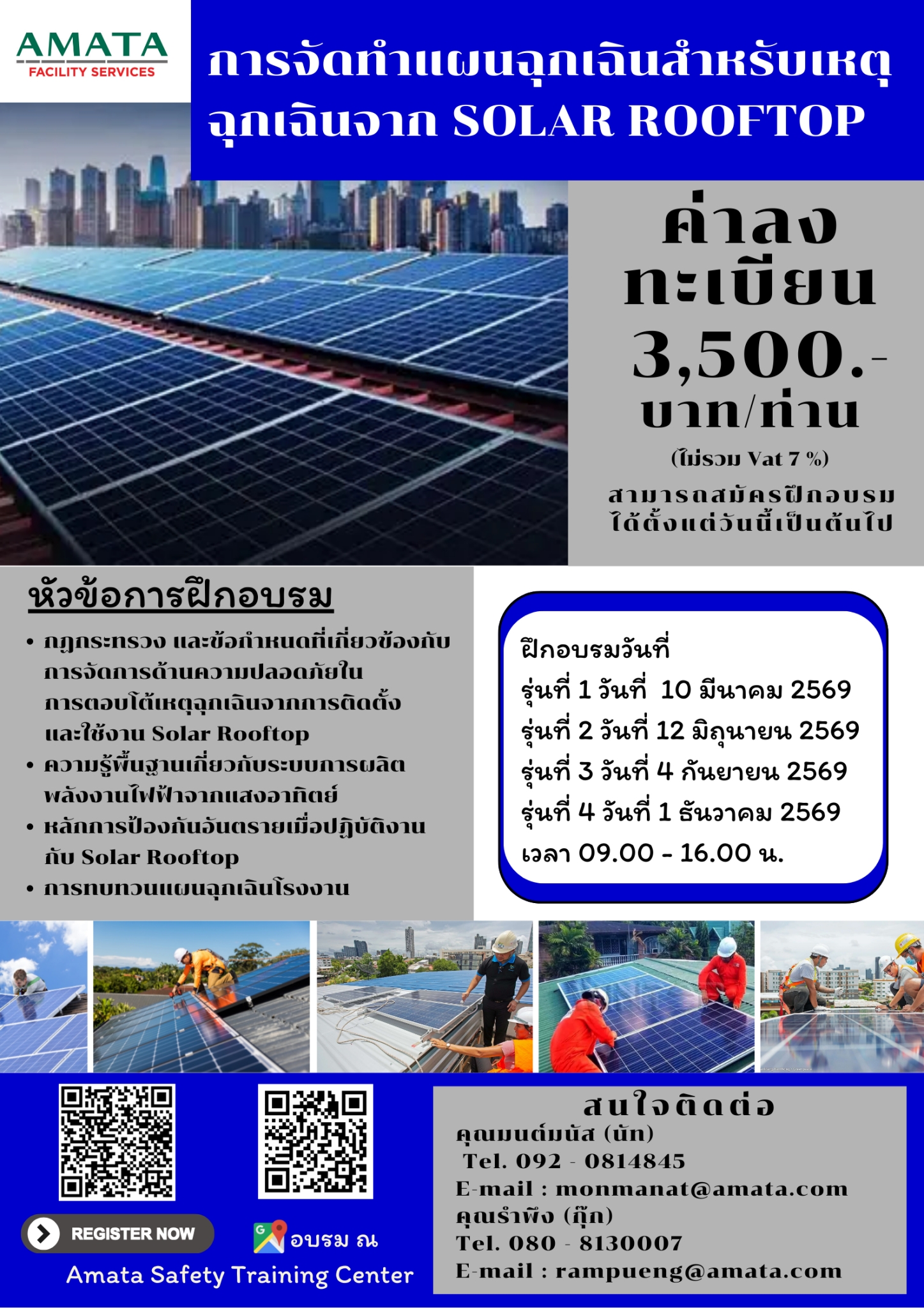 | 10 มี.ค. 68 | 6 | 3,500 | การจัดทำแผนฉุกเฉินสำหรับเหตุฉุกเฉินจาก Solar Rooftop | 20 คน | |