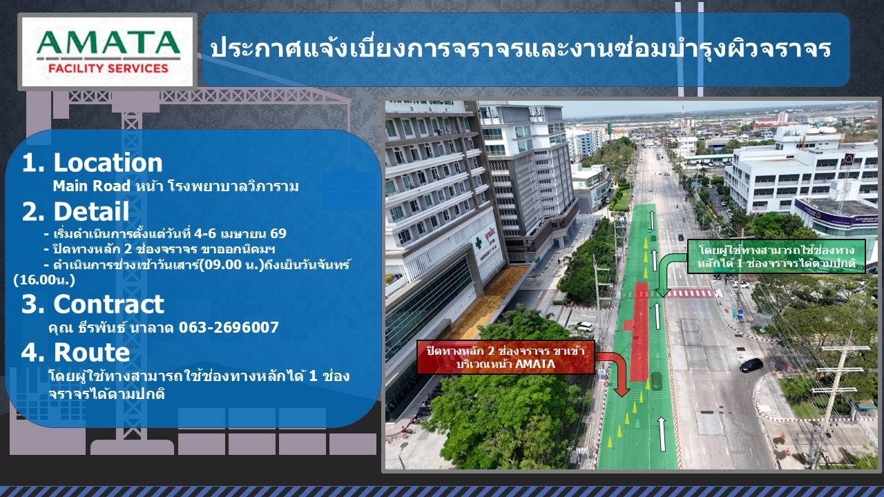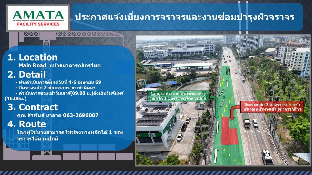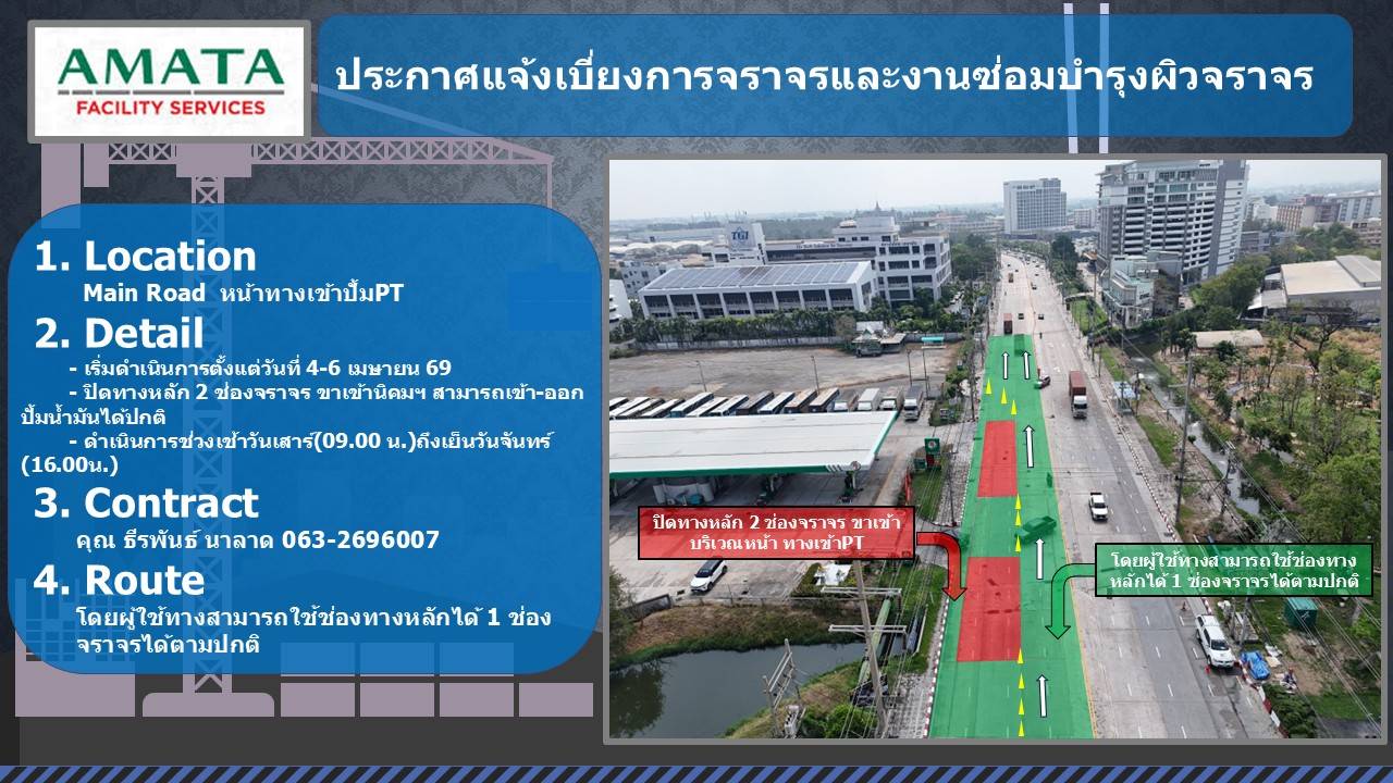 ข่าวฝากประชาสัมพันธ์พนักงานคู่ค้าของท่าน โครงการซ่อมถนนประจำปี 2569