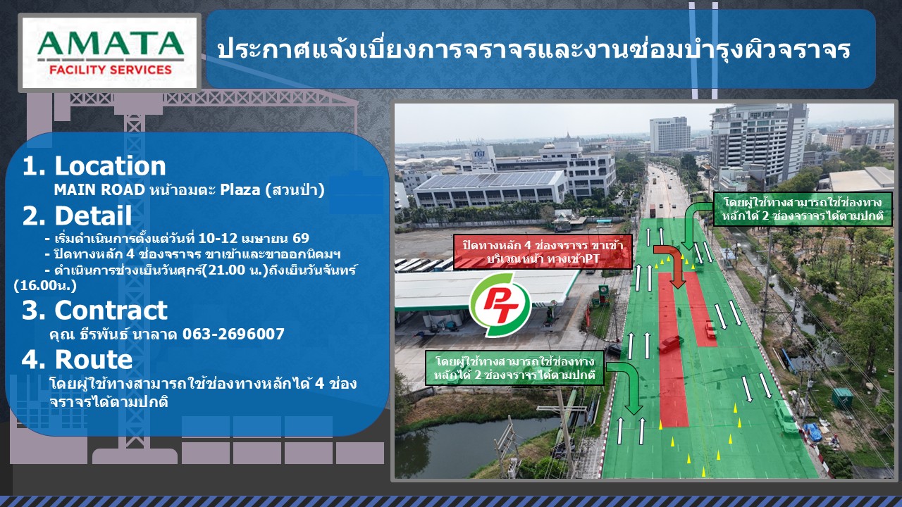 ข่าวฝากประชาสัมพันธ์พนักงานคู่ค้าของท่าน โครงการซ่อมถนนประจำปี 2569