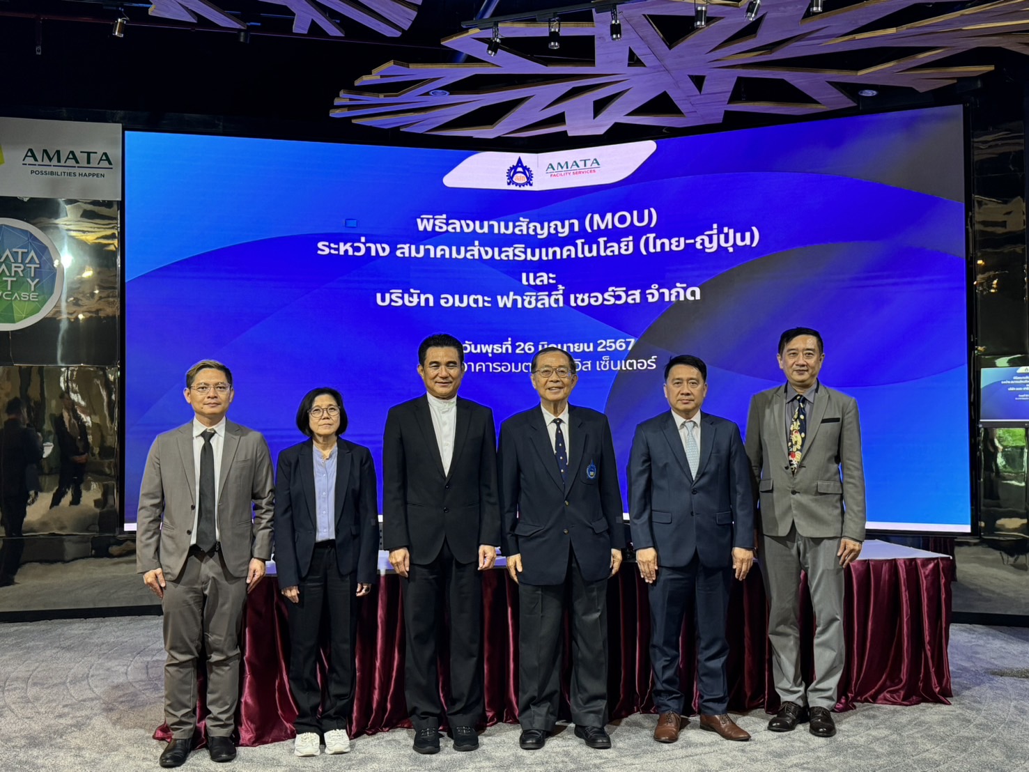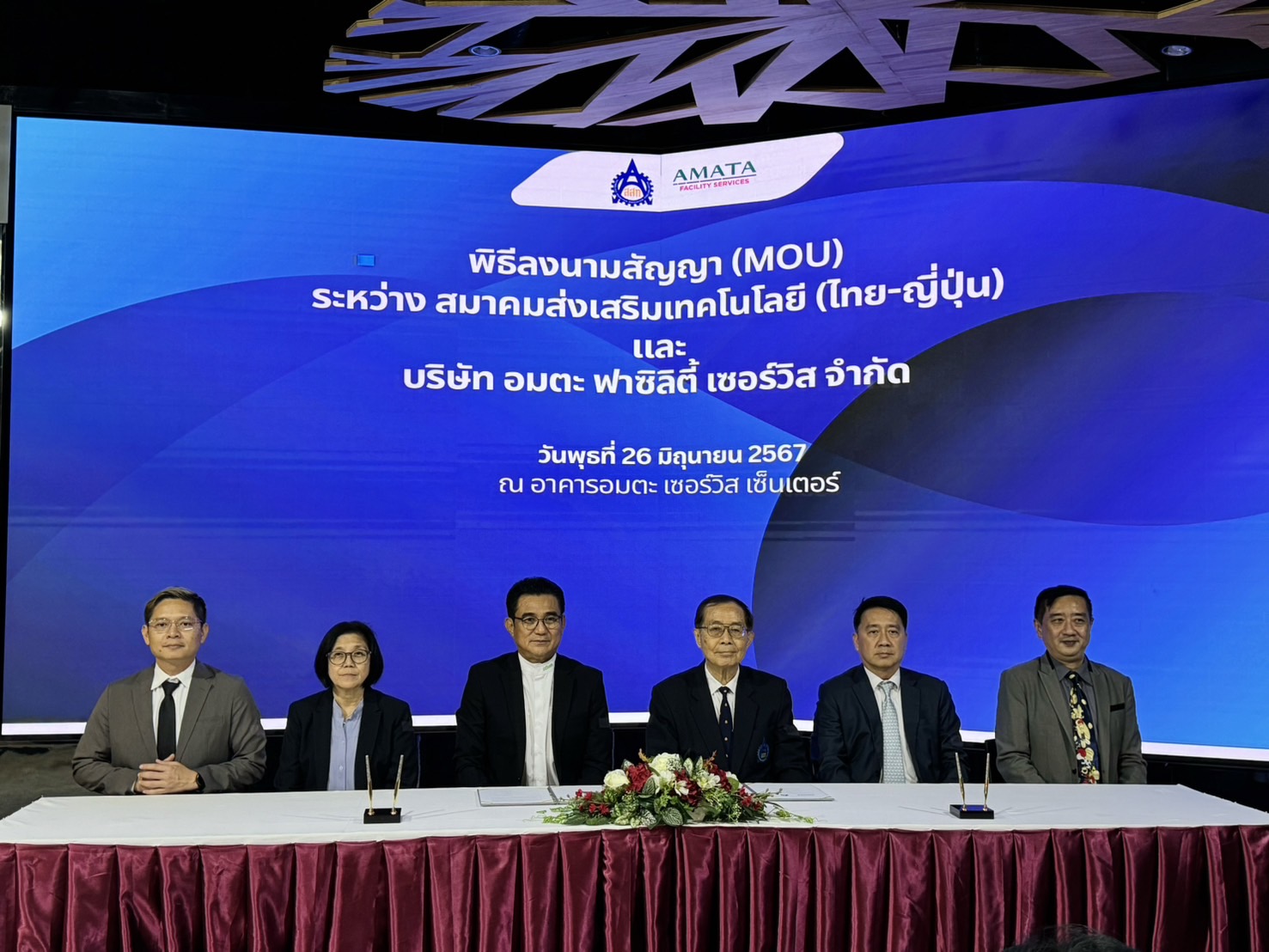 บริษัท อมตะ ฟาซิลิตี้ เซอร์วิส จำกัด จับมือสมาคมส่งเสริมเทคโนโลยี (ไทย-ญี่ปุ่นร่วมลงนามในบันทึกข้อตกลงความร่วมมือในการถ่ายทอดองค์ความรู้ด้านการบริหารและพัฒนาภาคอุตสาหกรรมของไทยในยุค Thailand 4.0 โดยดร.วิวัฒน์ กรมดิษฐ์ ประธานเจ้าหน้าที่เทคนิควิศวกรรม และประธานเจ้าหน้าที่บริหารกลุ่มธุรกิจอสังหาริมทรัพย์ในประเทศไทย คุณทรงโฉม ตั้งนวพันธ์ กรรมการ บริษัท อมตะ ฟาซิลิตี้ เซอร์วิส จำกัด ผศ. ประยูร เชี่ยววัฒนา นายกสมาคม ดร.สุพจน์ ชินวีระพันธุ์ ผู้อำนวยการสมาคม และ ดร.จักรกฤษณ์ สิริริน ผู้อำนวยการสายงานการศึกษา ฝึกอบรม สมาคมส่งเสริมเทคโนโลยี (ไทย-ญี่ปุ่น) ร่วมลงนามในครั้งนี้