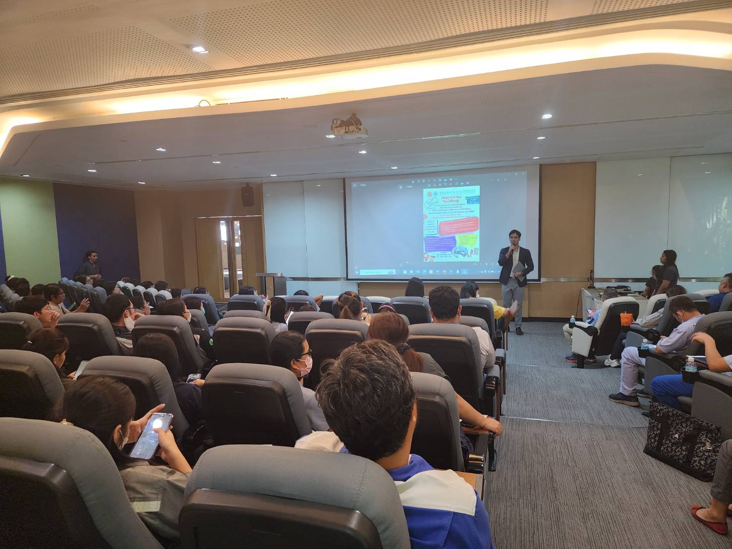ในครั้งนี้ได้รับเกียรติจากท่านวิทยากร รศ.ดร.โกวิท สุวรรณหงษ์ รองคณบดีฝ่ายบริการวิชาการ และนวัตกรรม คณะสาธารณสุขศาสตร์ มหาวิทยาลัยบูรพา โดยมีผู้ตัวแทนสถานประกอบการเข้าร่วม 120 คน และรับฟังผ่านช่องทาง ZOOM 100 คน