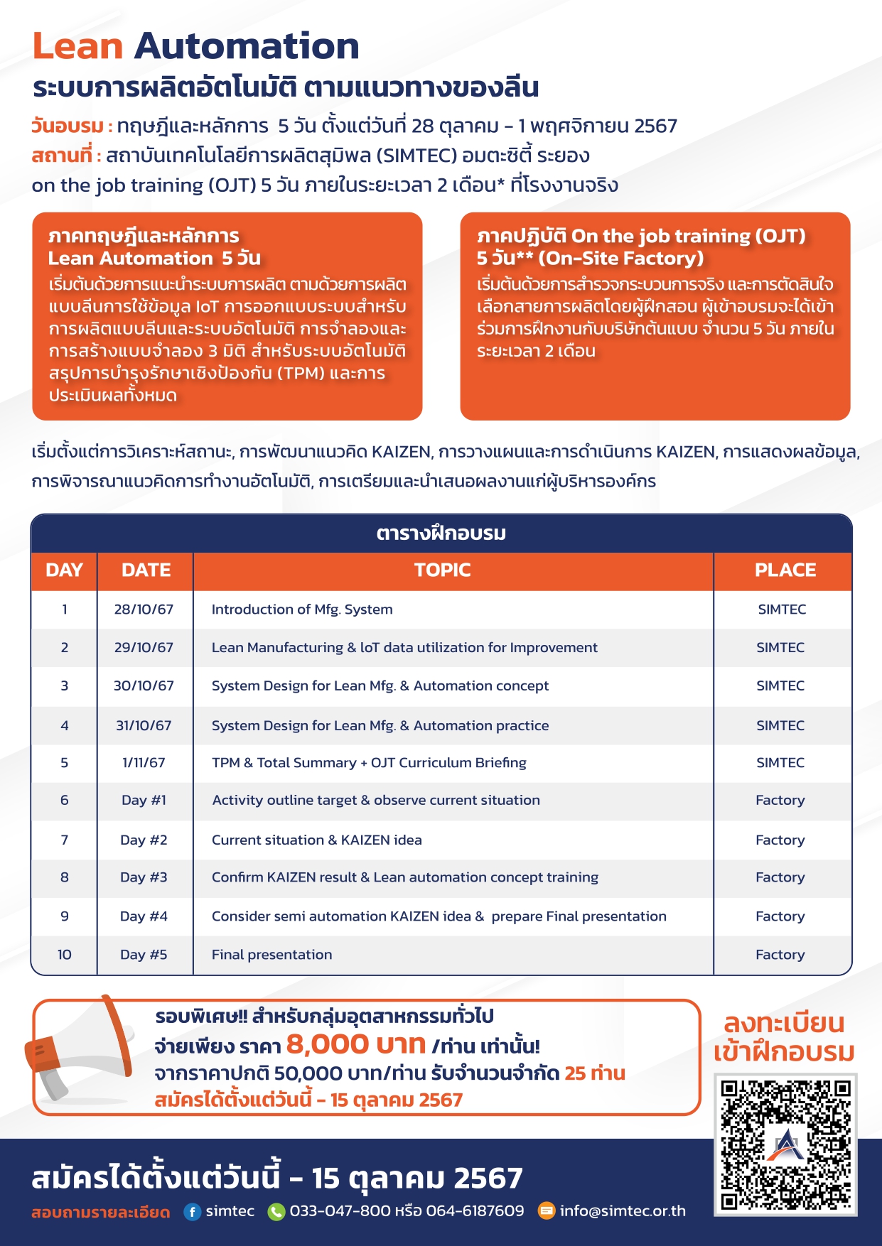 OJT (On the job training): 5 วัน ภายในระยะเวลา 2 เดือน