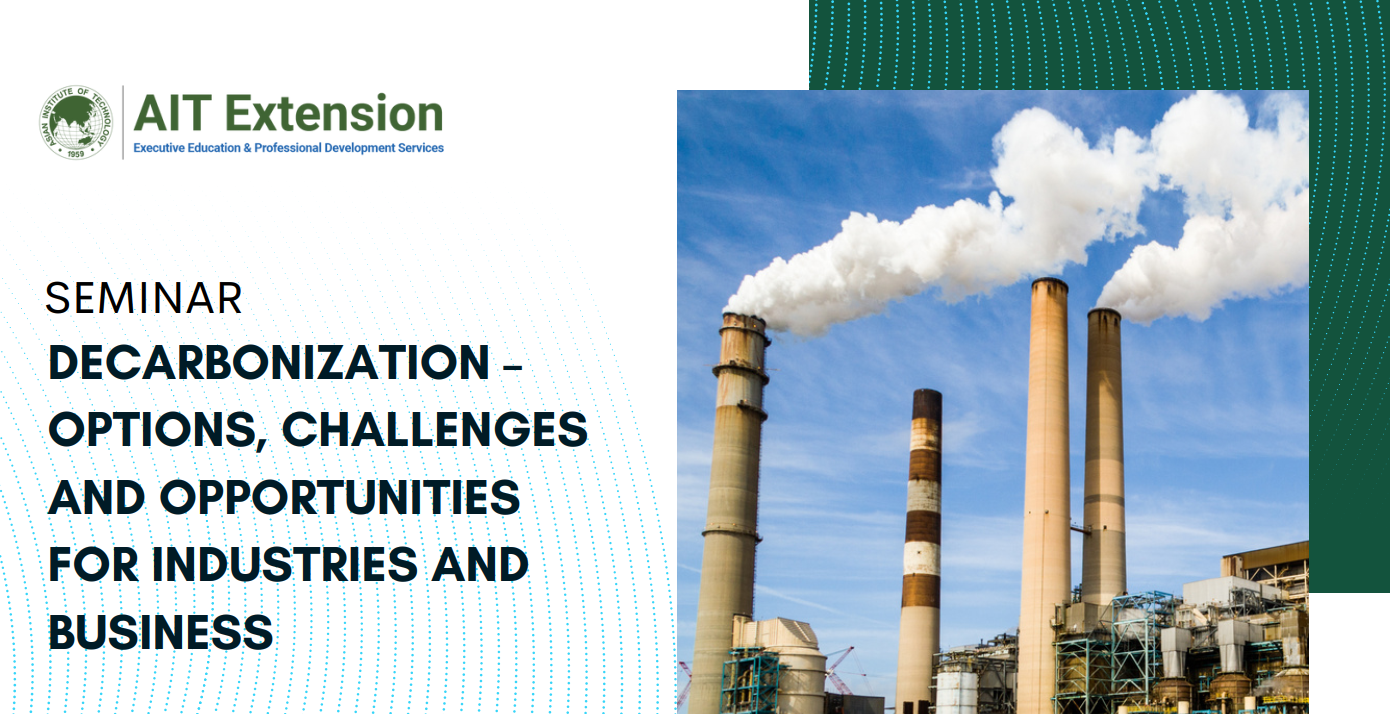 Amata Facility Services (AFS) ร่วมกับ AIT Extension แห่งสถาบันเทคโนโลยีแห่งเอเชีย (AIT) มีความยินดีที่จะประกาศจัดสัมมนาพิเศษในหัวข้อ "Decarbonization – ตัวเลือก ความท้าทาย และโอกาสสำหรับภาคอุตสาหกรรมและธุรกิจ" งานนี้มุ่งเน้นในประเด็นสำคัญของการลดการปล่อยคาร์บอนและผลกระทบที่มีต่อภาคอุตสาหกรรมในประเทศไทย โดยเฉพาะผู้ประกอบการในพื้นที่ AMATA CITY ชลบุรี และระยอง