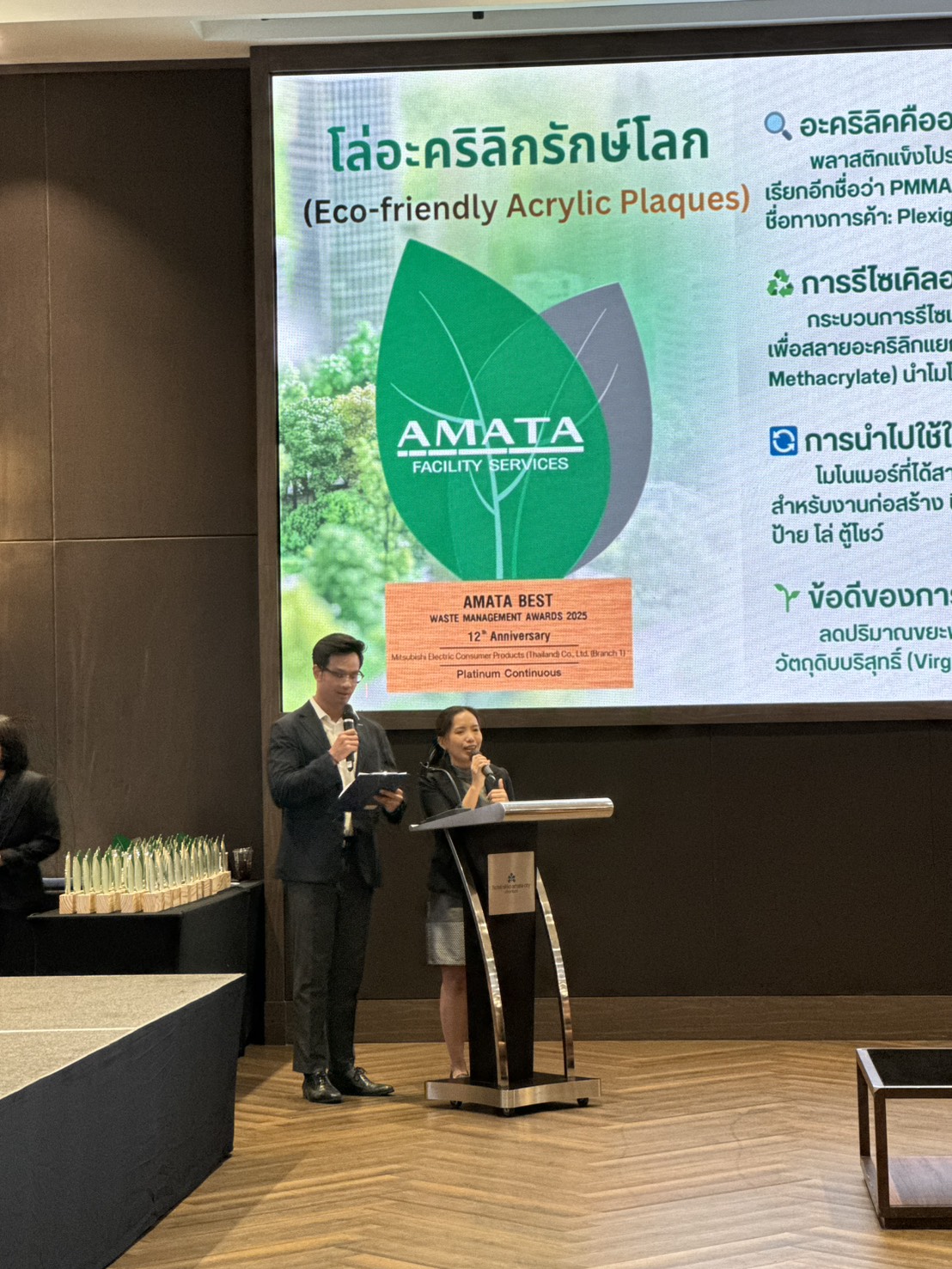 โดยได้รับเกิยรติจากคุณวีระพงศ์ ด้วงไพบูลย์ ผู้อำนวยการสำนักงานนิคมอุตสาหกรรมอมตะซิตี้ ชลบุรี คุณอัครเรศร์ ชูช่วย กรรมการผู้จัดการ บริษัท อมตะ ฟาซิลิตี้ เซอร์วิส จำกัด ร่วมเป็นประธานในพิธีมอบรางวัล โดยมอบแก่ผู้ประกอบการจำนวน 109 โรงงาน ที่ผ่านมาตรฐานการคัดเลือก การจัดการกากอุตสาหกรรมและมูลฝอยในโรงงานดีเด่น โดยแบ่งเป็น 3 ระดับ ได้แก่ Silver, Gold และ Platinum ณ โรงแรมนิกโก้ อมตะซิตี้ ชลบุรี ซึ่งเป็นส่วนหนึ่งในงาน Amata Carbon Neutral Network Conference 2025 ซึ่งจัดระหว่างวันที่ 20-21 พฤศจิกายน 2568