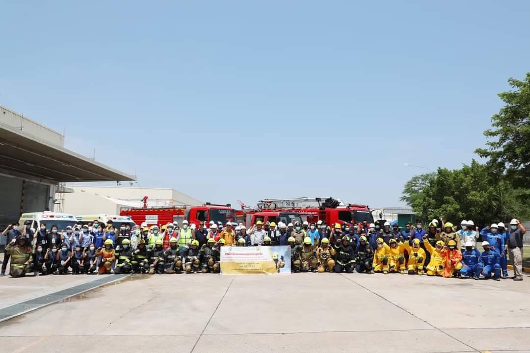 The purpose was to rehearse the readiness of agencies in emergency response, communication, use of equipment, etc. to effectively control and suppress incidents to reduce the risk of loss of life and property for operators and people in nearby communities. Mr.Aukkares Choochouy, Managing Director of Amata Facility Service Co., Ltd., and Miss Witchuda Seemakachorn, Director of AMATA City Chonburi Industrial Estate Authority of Thailand branch office were jointly practicing in this emergency response.