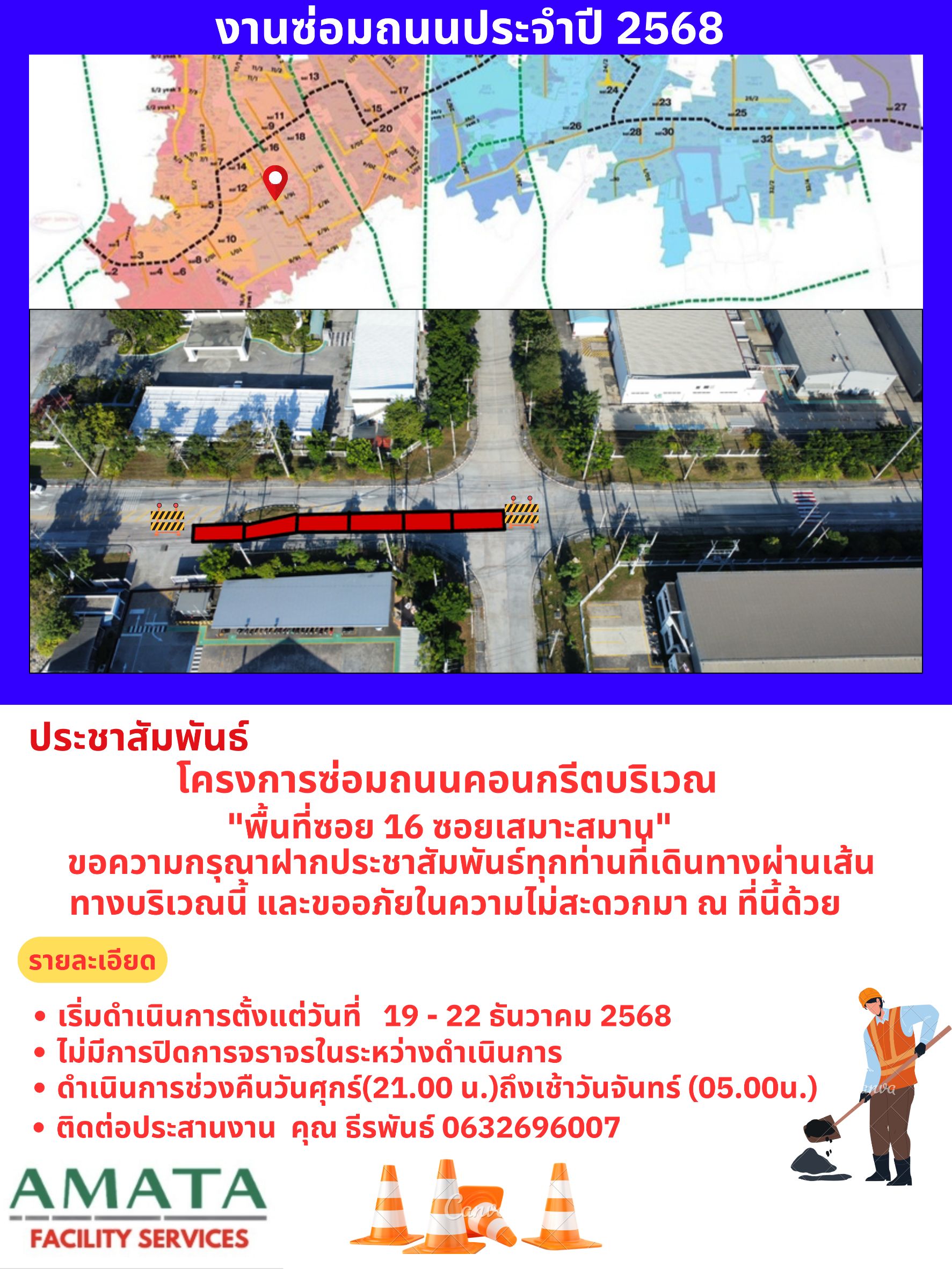 Amata City Chonburi : Annual Road Construction Projects 2025 in following details.