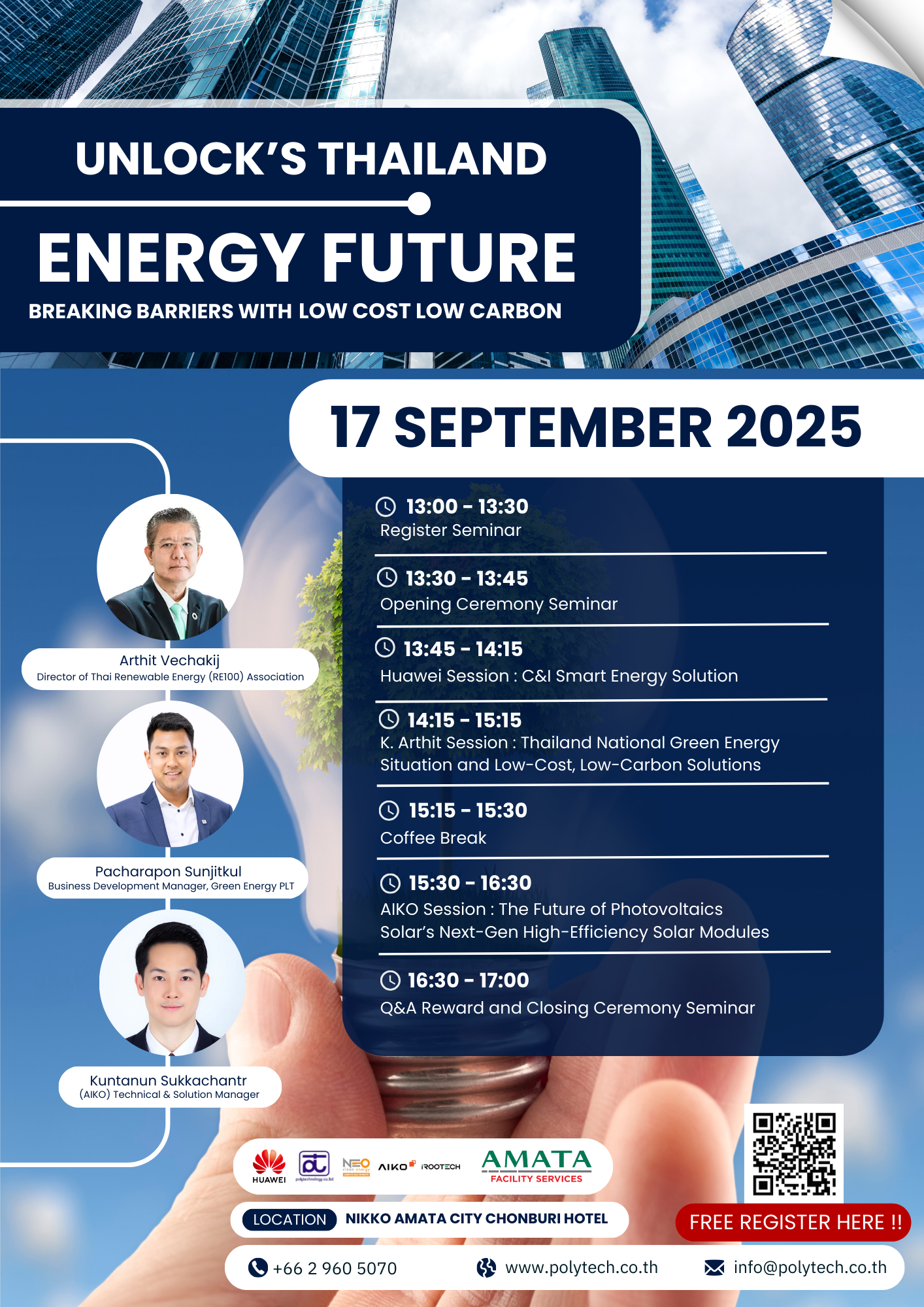 Thailand is entering a new era of energy transformation. This seminar is designed to share insights, exchange perspectives, and explore innovations in low-cost, low-carbon energy solutions that will drive Thailand toward a more sustainable future.