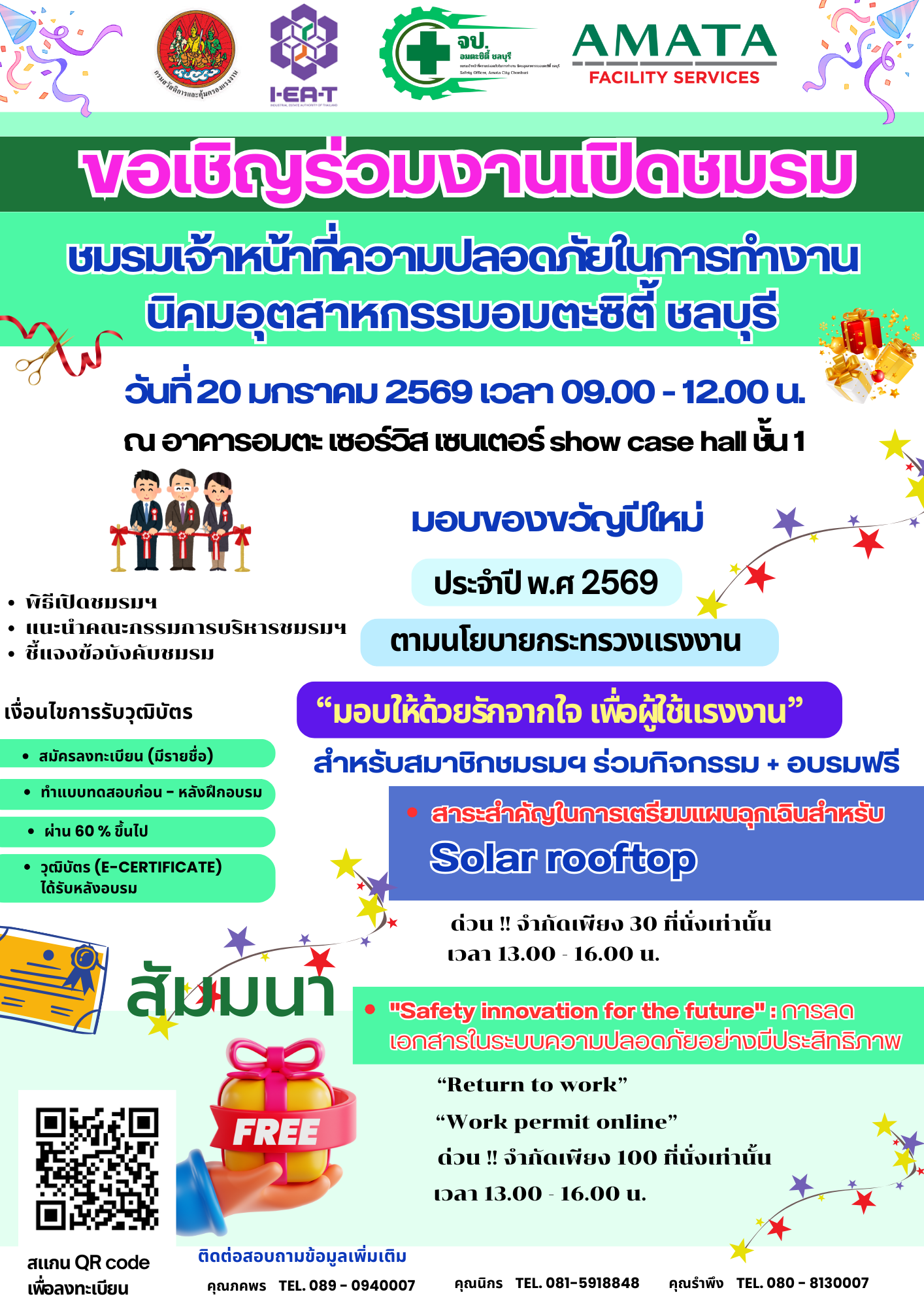 Amata Facility Service Co., Ltd., in collaboration with the Amata City Chonburi Industrial Estate Office, invites all establishments within Amata City Chonburi to join the “Amata City Chonburi Safety Officers Club.” This network aims to enhance occupational safety, health, and workplace environmental standards while serving as a central hub for knowledge-sharing, experience exchange, and best safety practices among organizations within the estate.